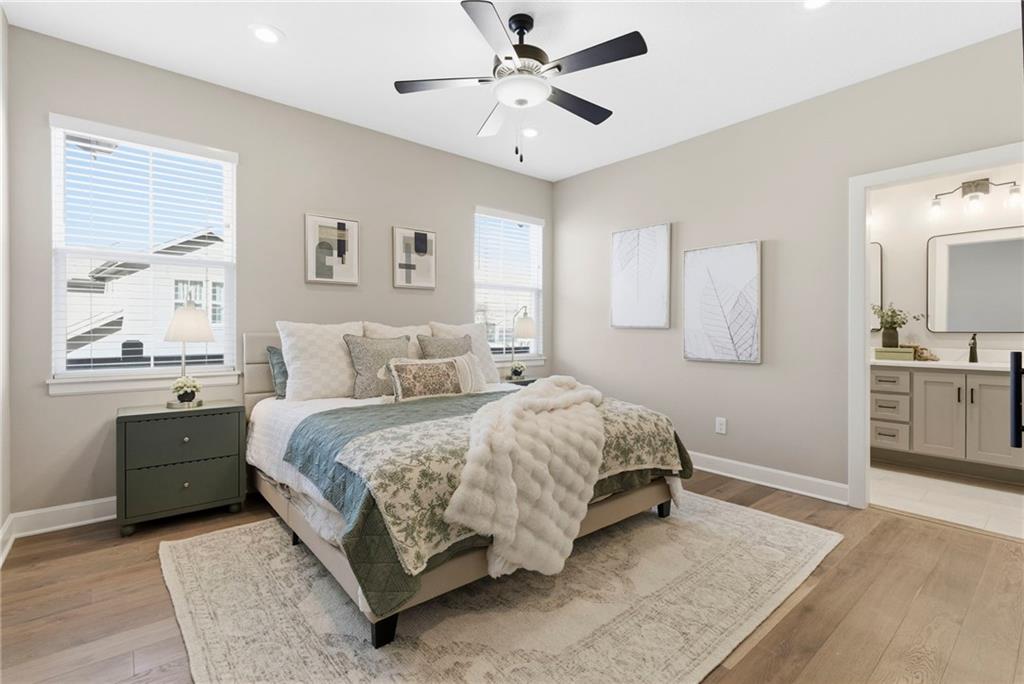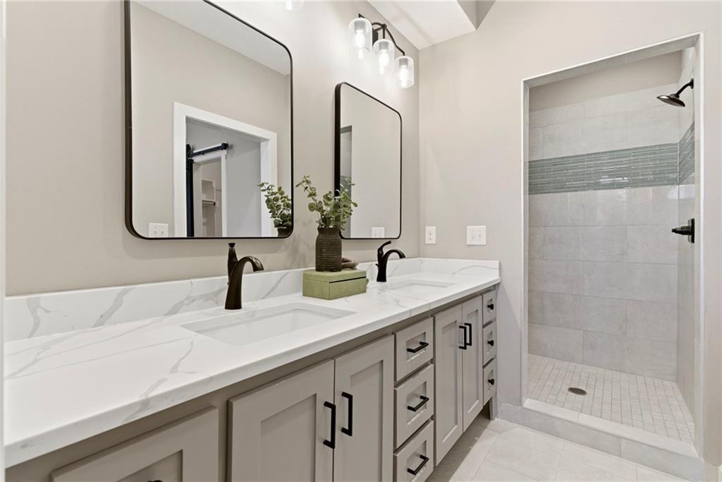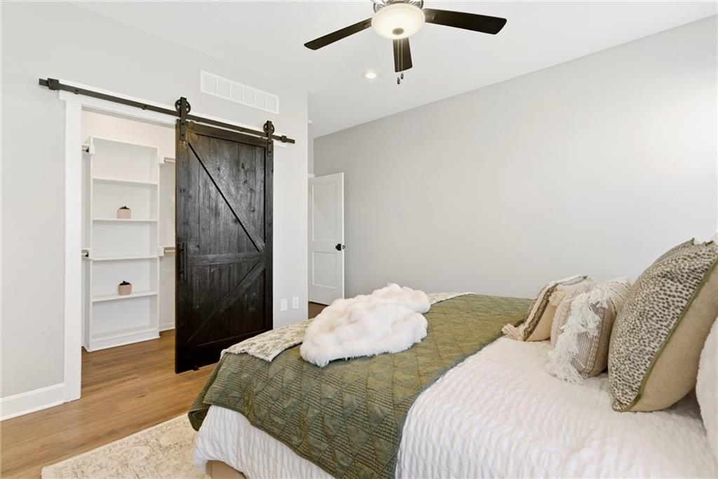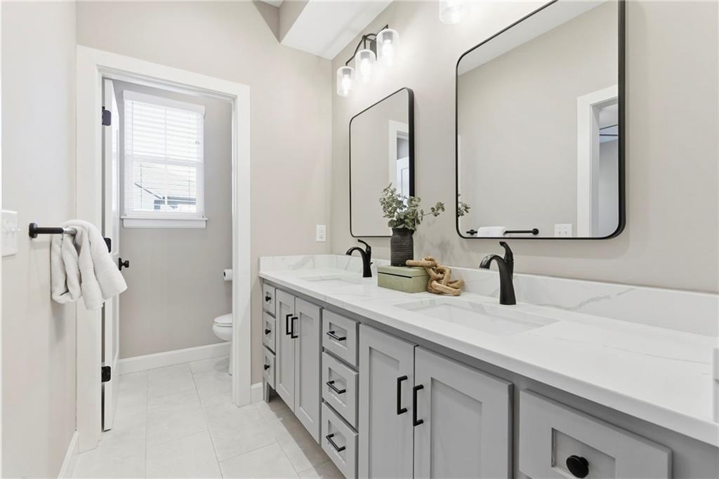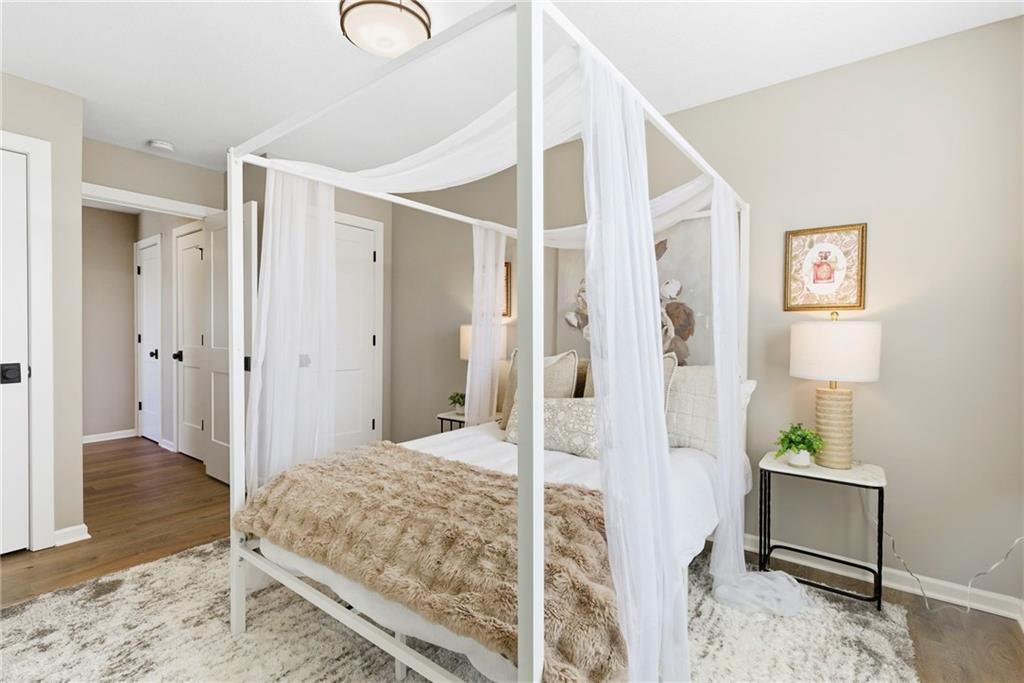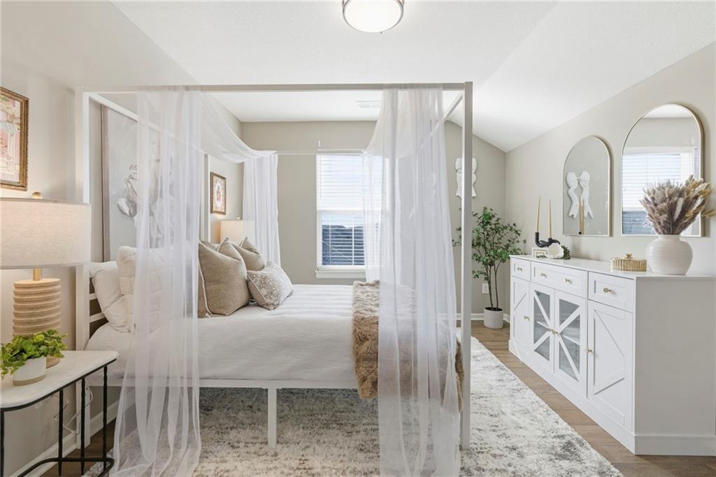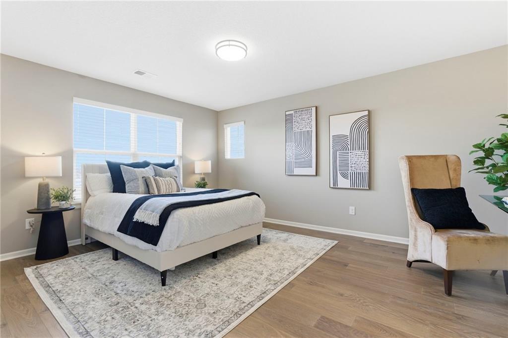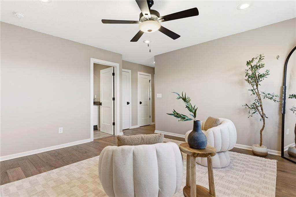 Better than new! So many upgrades in this gorgeous townhome! Located in the highly desirable and convenient community of The Landings at Stone Creek, this 1.5-story home offers privacy as a corner lot in the Olathe school district! Spacious and open with soaring ceilings, a dramatic wall of windows frames the tree-lined scenery and fills the home with natural light. The kitchen features a large quartz island perfect for dining, gathering, or work space, a tiled backsplash, and upgraded custom cabinetry. The main-level primary suite includes a walk-in shower, double vanity, and walk-in closet, along with convenient main-level laundry and a powder room for guests. Upstairs, a huge bonus loft provides flexible space for an office, second living area, or playroom! Extensive upgrades include real hardwood flooring, epoxy garage floors, custom wood blinds, custom cabinetry, upgraded hardware throughout, designer tile selections, newer light fixtures, and a whole-home humidifier! Maintenance-provided living with a low HOA in a sought-after location close to everything! Don't miss it!